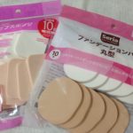 プチプラ繋がりで大人買いしたダイソーのメイク用パウダーパフ3個入り(直径58㎜)をケースに入れてみたらきちんと収まりました。フタもきちんと閉まります。